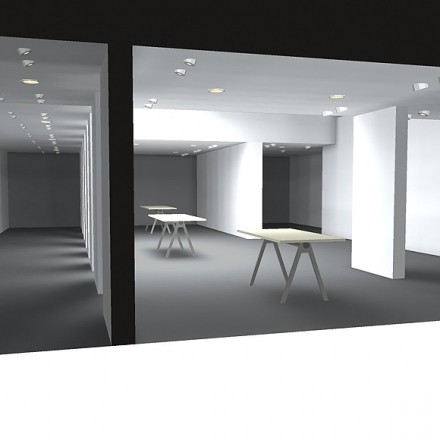 Das Design des modularen Systems des Messeauftritts wurde größtenteils übernommen und auf die vorliegenden Ausstellungsräume angepasst. Ein neuer, dem Design der Ausstellungsobjekte angepasster Fußbodenbelag, war zudem gewünscht.